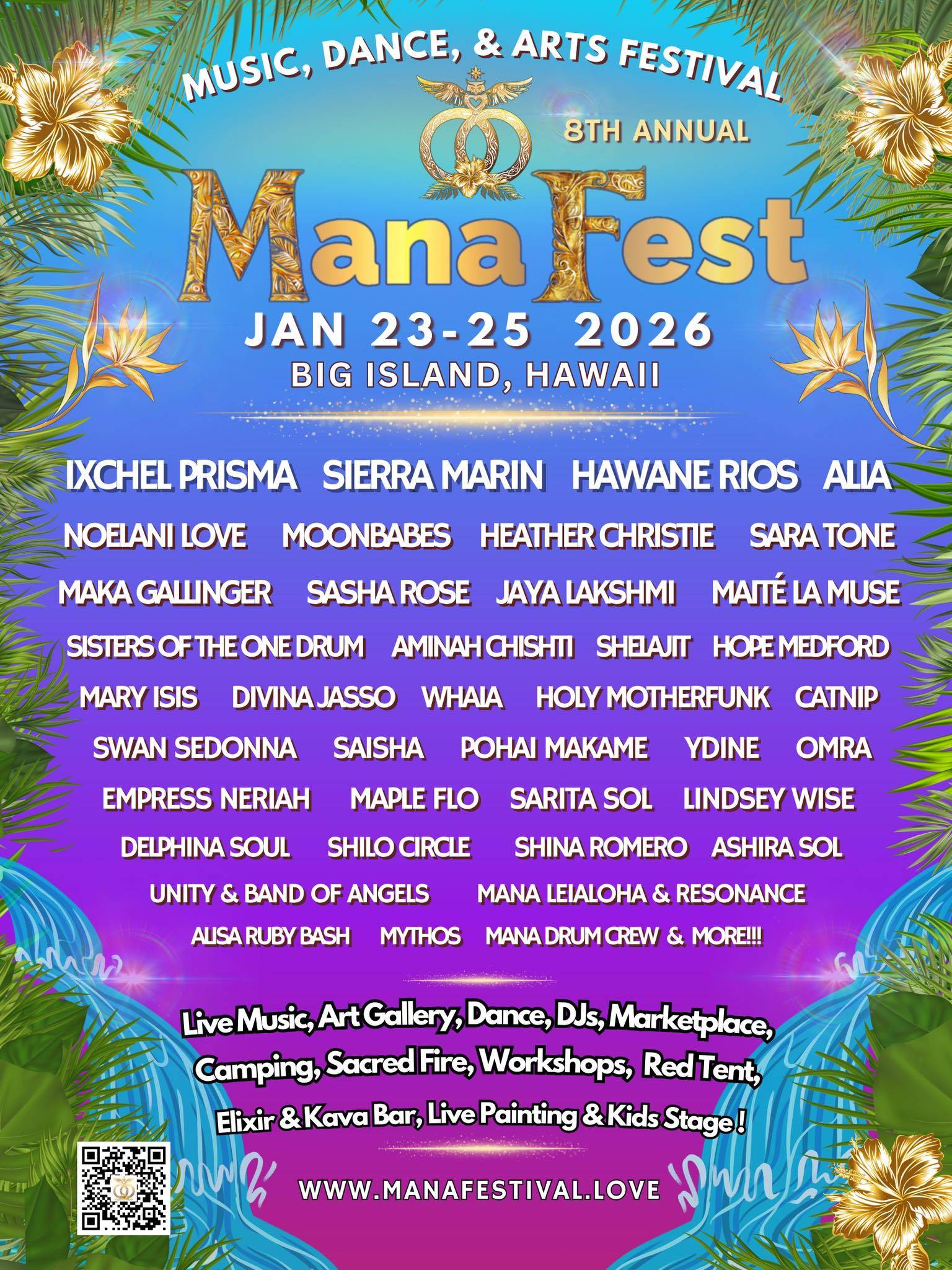 ManaFest is a 3 Day transformational festival in beautiful Hawai'i, featuring Music, Dance, Culture & Arts. A place where you can refresh, renew, and reawaken your spirit, where the ocean meets the jungle, and EVERYONE is Welcome!