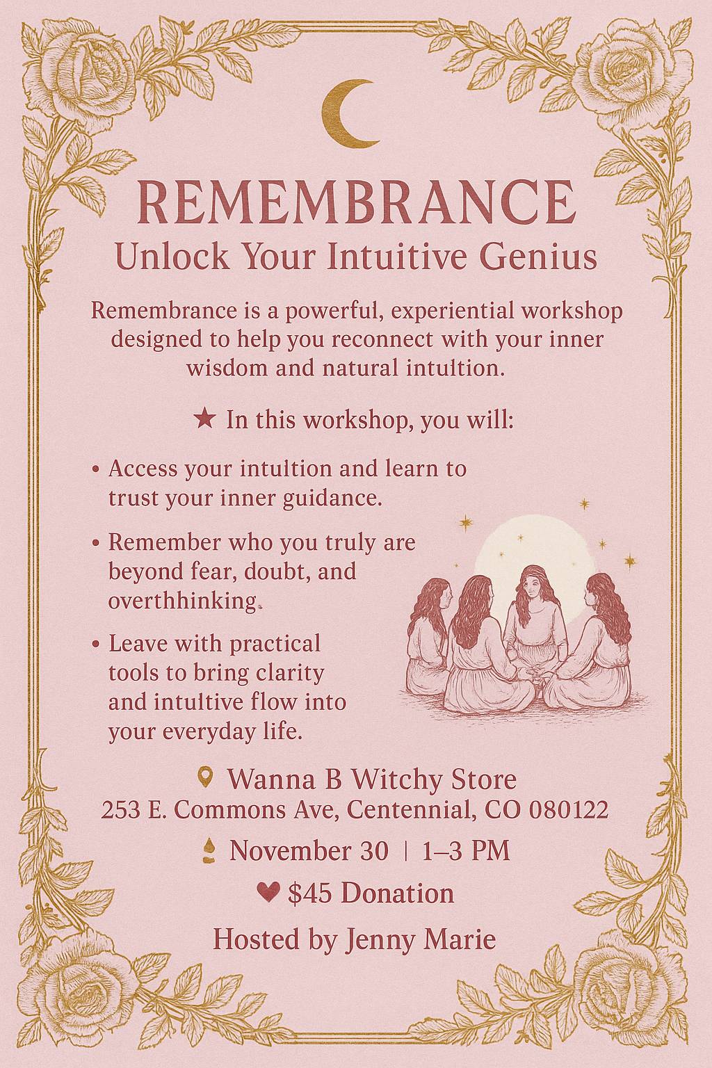 📍Wanna B Witchy Store — 253 E. Commons Ave, Centennial, CO 80122 / In person - Event Details: 💖 $45 Donation